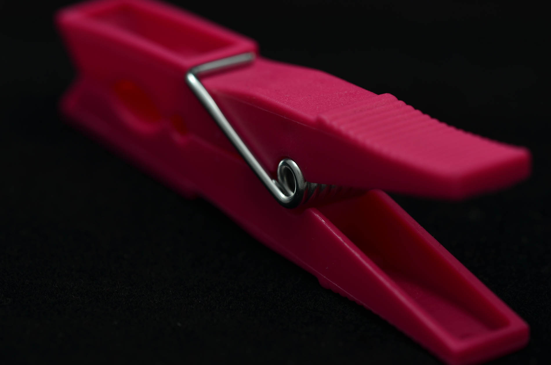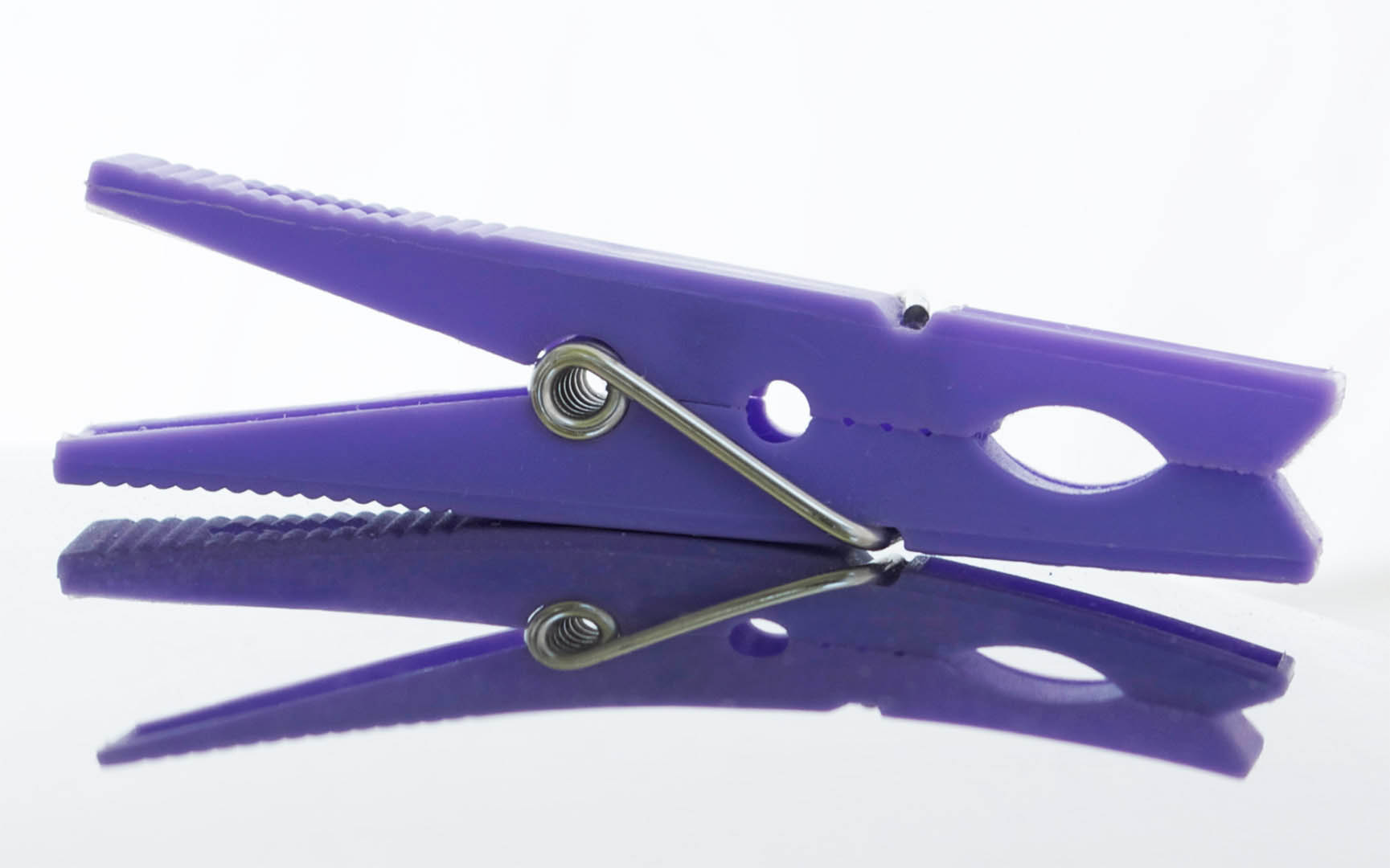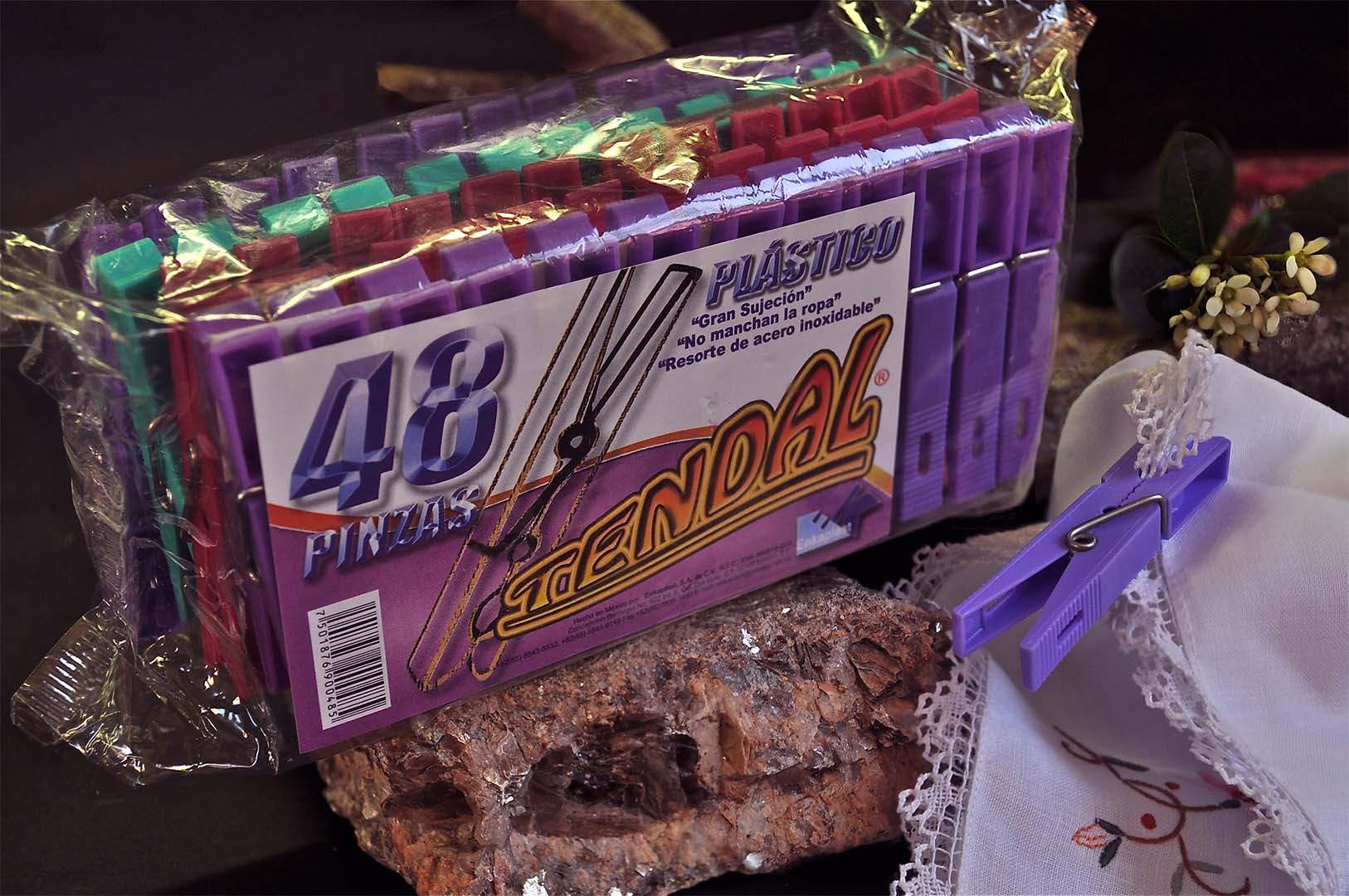 Pinza fabricada con polipropileno de alta fluidez y de primera calidad. Resorte de ocho vueltas, realizado con acero galvanizado, que proporciona alta resistencia ante la oxidación. Embolsado en film de polipropileno biorientado.
