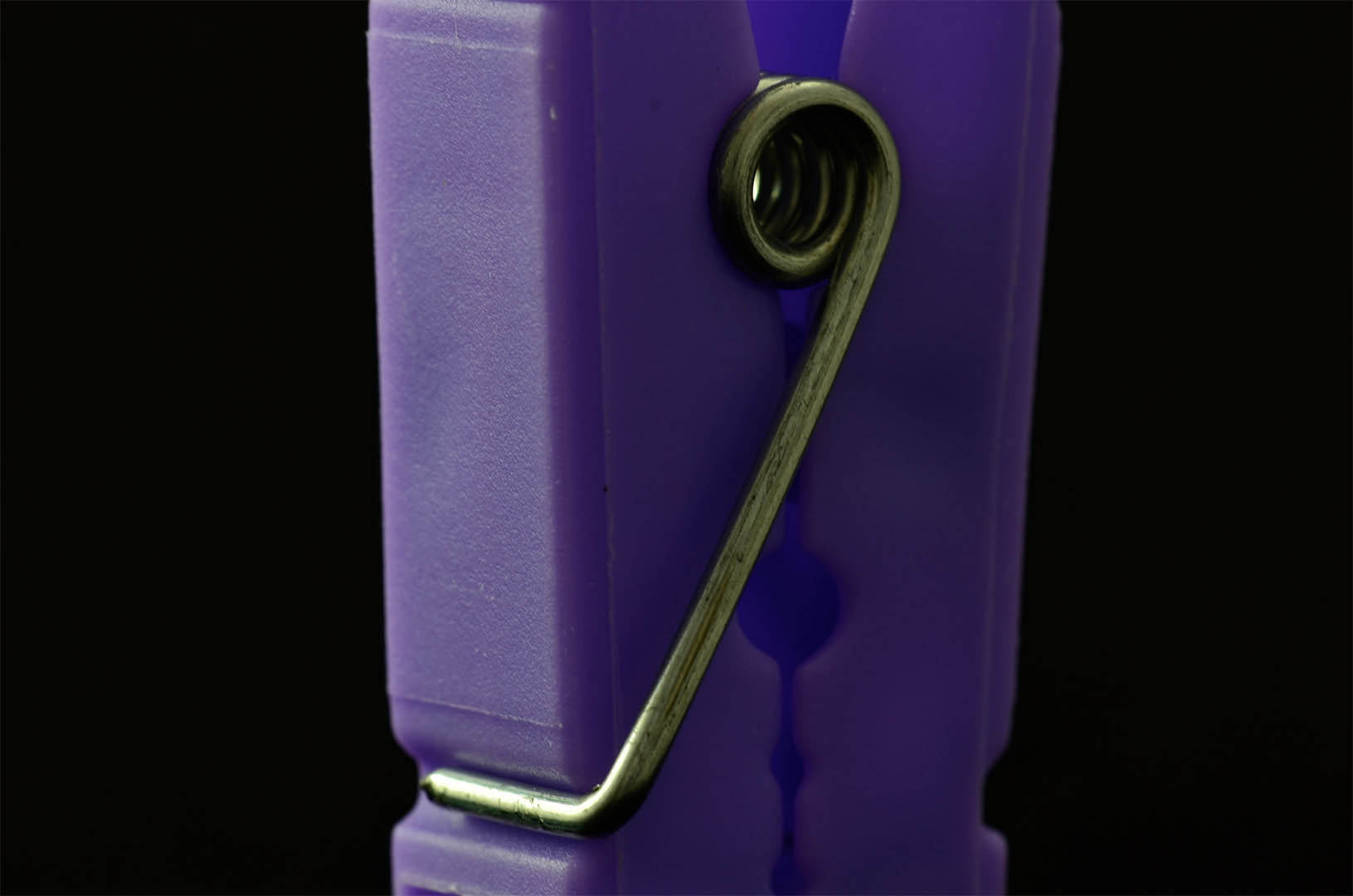 Pinza fabricada con polipropileno de alta fluidez y de primera calidad. Resorte de siete vueltas, realizado con acero galvanizado, que proporciona alta resistencia ante la oxidación. Embolsado en film de polipropileno biorientado.